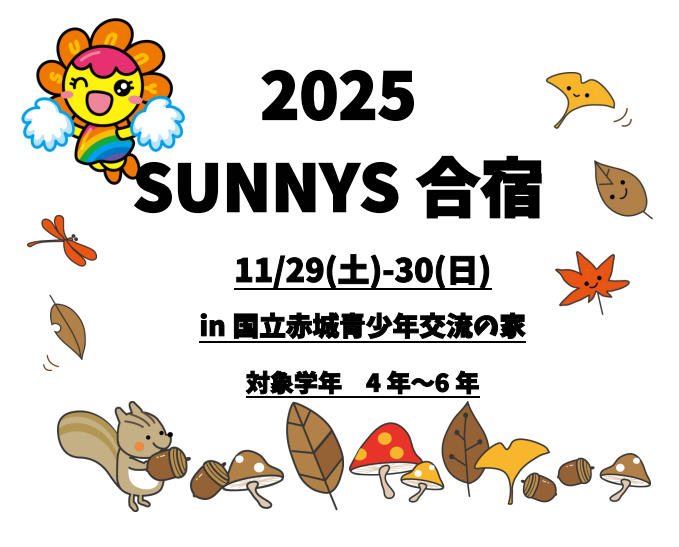 サニーズでは11月29日(土)〜30(日)に1泊2日の合宿を行います。